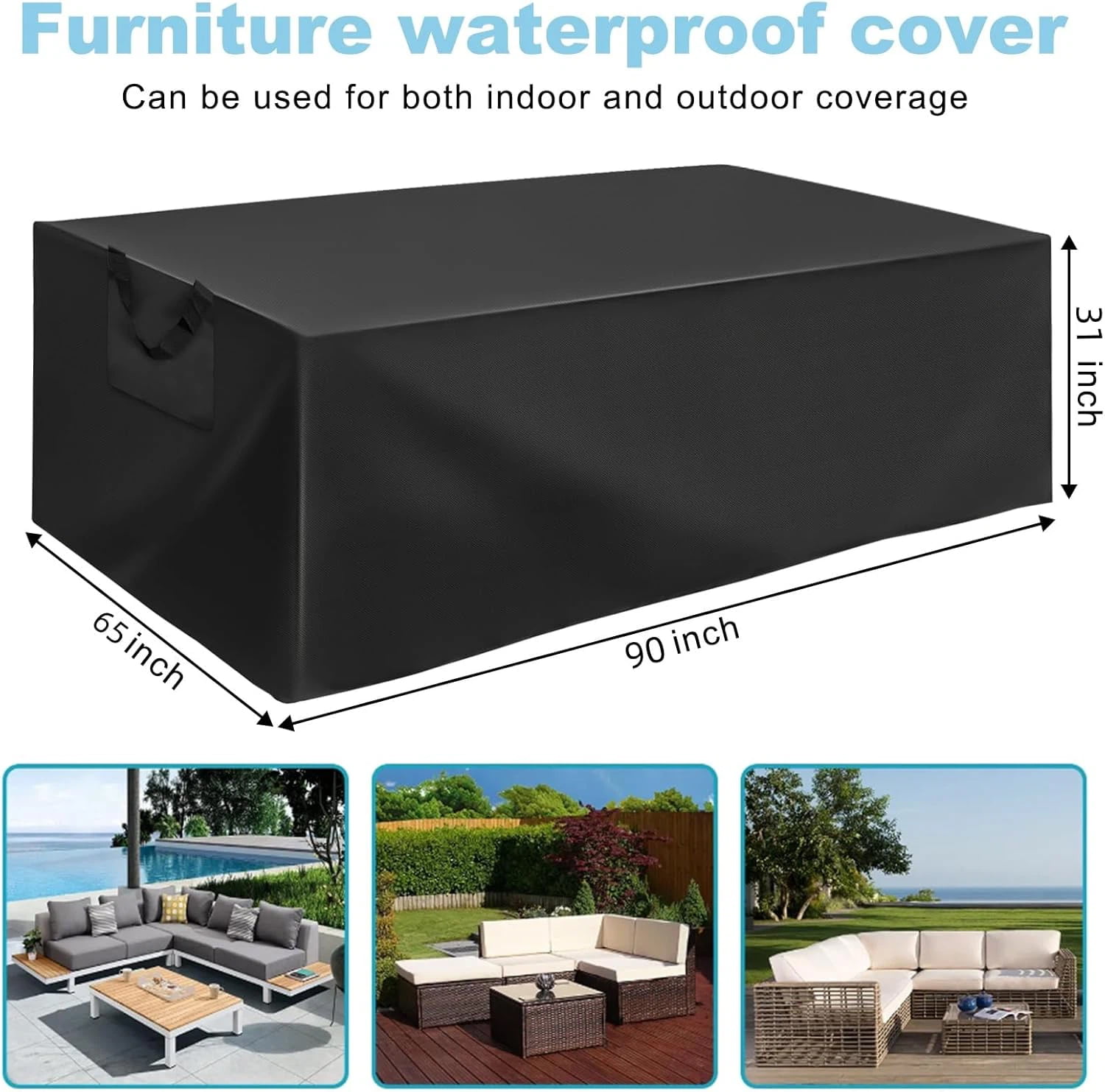 这款套的尺寸为 90 英寸长 x 65 英寸宽 x 31 英寸高,适合大多数家具形状和尺寸。无论您有餐桌、沙发还是其他类型的露台家具,这款套都提供多功能解决方案。宽大的尺寸提供全面的覆盖,保护您的家具免受灰尘、落叶、鸟粪和其他潜在损坏源的侵害。