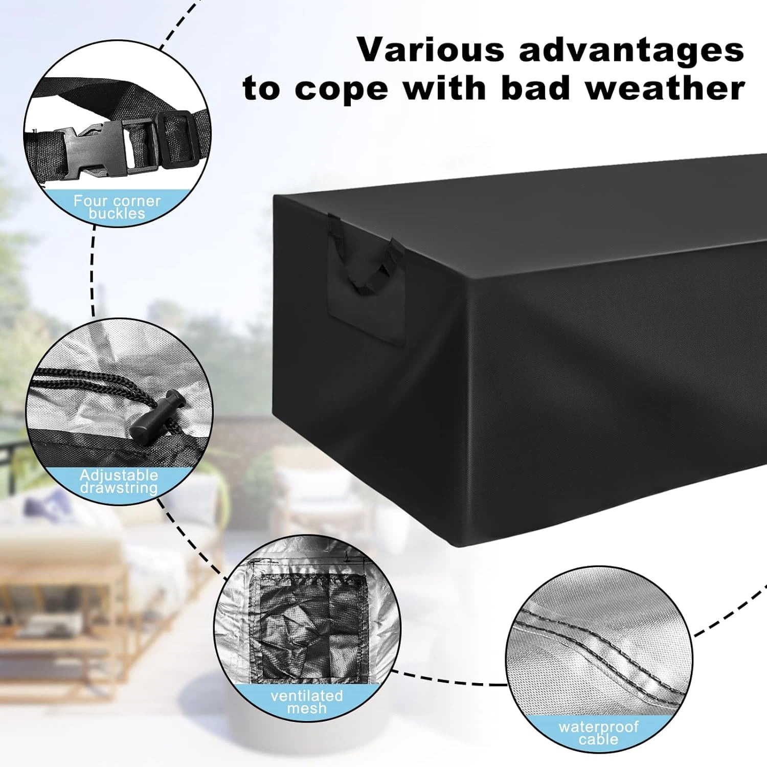 1.带扣,即使风太大也没有问题,Manful防水户外家具罩可以保护您的家具免受风吹雨打。
